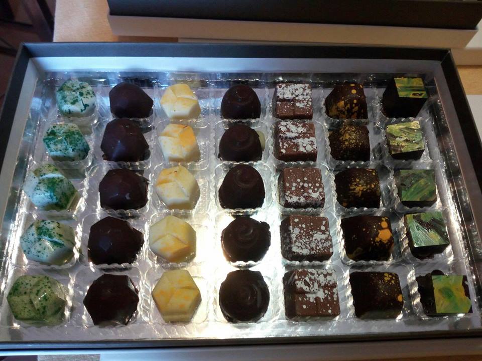 Cioccolatini al fondente con ganache al fondente, Cioccolatini al fondente con ganasche al latte, Cioccolatini al fondente con ganasche alla nocciola, Cioccolatini al cioccolato bianco con ganache, Test prova